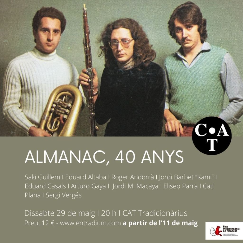 “Almanac” va ser el primer disc de La Murga, un grup que va reunir músics de procedències diverses com Josep Pons, Eduard Altaba, Saki Guillem, Enric Esteve, Josep Cabré, Eliseu Parra i Jordi Fàbregas, amb la voluntat de portar les cançons i melodies tradicionals cap a un espai de dignificació merescuda, experimentació necessària, risc, respecte i divulgació. Ara, 40 anys després, en el marc del 34è festival Tradicionarius presentem una versió reinterpretada i diferent però amb l’esperit il·lusionador renovat i augmentat, contemplant amb un cert orgull el testimoni recollit per les generacions posteriors d’aquell “Almanac” de La Murga.